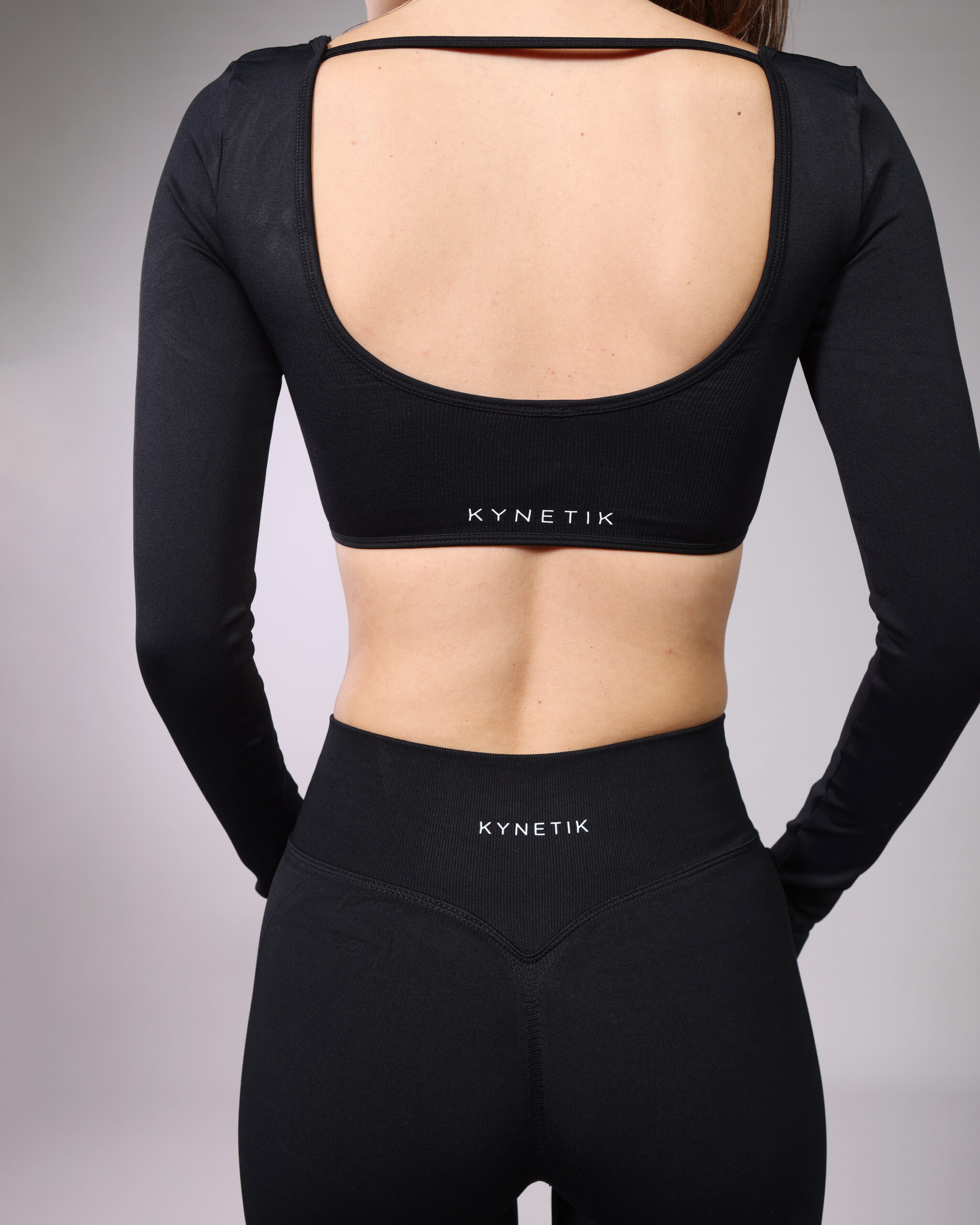 Seamless Crop Top with long sleeve – Black – Body fit – W19